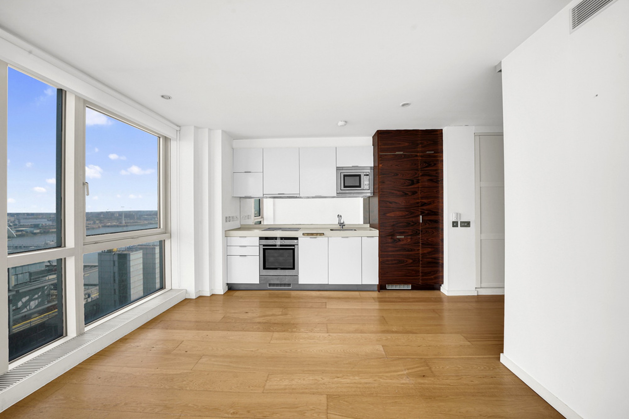 Positioned on the nineteenth floor, this studio apartment on Fairmont Avenue, E14, combines elevated city views with a sought-after riverside setting.